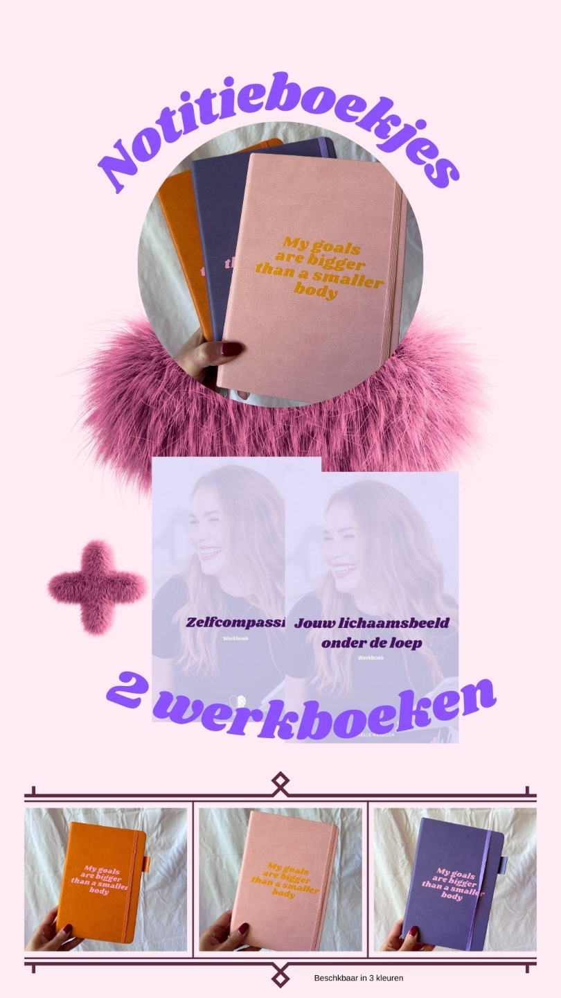 Als zelfliefde en lichaamsacceptatiecoach heb ik een missie om vrouwen weer van hun lichaam te laten houden. Deze speciale set met notiteboekje en twee digitale werkboeken zijn de perfecte manier om jouw zelfliefde en lichaamsacceptatie een boost te geven.